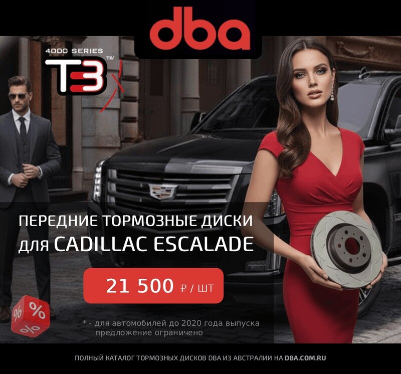 Акция на передние тормозные диски DBA 4000 Series T3 для Escalade/ Tahoe по специальной цене. Колличество ограничено. По проверке применяемо...