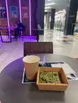 Нашли новое кафе. Заходим с ребенком пару раз в неделю. Хороший выбор еды и напитков. Много ЗОЖных штук. И при этом - вкусный кофе (бариста сказал, используют Tasty coffee). А ребенок каждый раз выбирает новое, пробовала банановый протеин, апельсиновый изотоник со льдом, клубничный смузи на безлактозном молоке - все понравилось. Если важно качество продуктов и если следите за кбжу, то точно хорошее место Розеток бы ещё побольше
