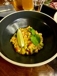 Шикарное место! Сразу хочется отметить интерьер: темные тона, полумрак и яркие белые светящиеся подвесы в виде дорожки под потолком через весь зал. Большие панорамные окна дают ощущение свободы. Смотрится отлично! Меню очень большое и вкусное, винная карта огромная, на разный запрос бюджет. Официаньы молодые люди, которые общаются легко и непринужденно, я бы сказал-по дружески. Хорошо знают меню, могут посоветовать блюдо или напиток по предпочтениям. Отдача блюд быстрая: напитки 5-7 мин, салаты и нарезки 10-12 мин, горячее 20 мин. И это в пятницу вечер, но посадка неполная. По совету официанта попробовал томленый говяжий хвост! Долгое время имел желание его попробовать, но само название вселяло страх и даже некое отвращение. Услышав от официанта подробный рассказ о блюде и способе его приготовления, я забыл про свою фобию и сделал заказ. И не пожалел! Нежное томленое мясо отходило от кости и радовало своим нежным и приятным вкусом. Для сравнения-еще нежнее говяжьих щек! А копченое картофельное пюре дополняло общую нежность блюда при таком отпугивающем названии) Обязательно к заказу! коротко скажу об остальных блюдах: нарезки качественные и вкусные, салаты большие и аппетитные. Тар тар из лосося и манго-выше всяческих похвал: вкусно, нежно, красиво! Однозначно рекомендую к посещению! Цены высокие, но стоит того. Наш дружеский ужин удался! Обязательно посетим еще, когда будем в Брянске!