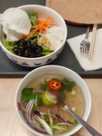 По оценкам думали будет хорошо, но по факту лучше отдать предпочтение другим местам, на фо бульон не наваристый, да и наполнение оставляет желать лучшего, слишком мало зелени и мясо жесткое Если прям вариантов нет и вы не пробовали нормального наваристого супчика, может вам и зайдет Компот пойдёт и его можно взять Рис база словно дома сделали, но почти за 600 рублей грустно