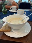 Остановились на обед и заехали на автомойку в Сегеже по пути в Мурманск. Очень довольны этим кафе: все, что брали было вкусно (супы, рыбу, блины). Единственно, судак в орехово-горчичном соусе немного странный: была сырная корочка и сверху грецие орехи вместо соуса. В общем достойный уровень для кафе в небольшом городе! Порции достойные, интерьер свежий, официант вежливый, ценник небольшой В напиткам положили по конфетке - мелочь, а приятно. _________ Возможно будет полезно: В этом же здании магнит - можно сразу докупить воду и тд в машину. А на этой же улице мойка самообслуживания. И не паркуйте машину за воротами отгрузки магнита, а то может приехать фура и вам будет не выехать, пока она не разгрузится ))
