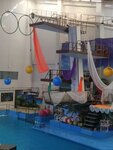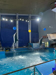 Этот бассейн поменьше, чем Альбатрос, но дли на дорожек тоже 50 метров. Правда их количество меньше, кажется всего 8. И глубина не везде большая: с одной стороны можно стоять и вода будет по шею, дно пологое с наклоном, и только к середине становится достаточно глубоко, чтобы не возможно было стоять. Зато здесь есть и кафе, и тренажёрный зал, и дельфинарий в соседнем здании.