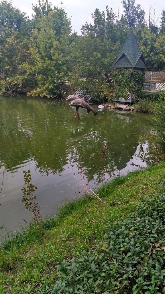 Очень красивая и интересная скульптура. Необычно видеть дельфинов в пресной местности)