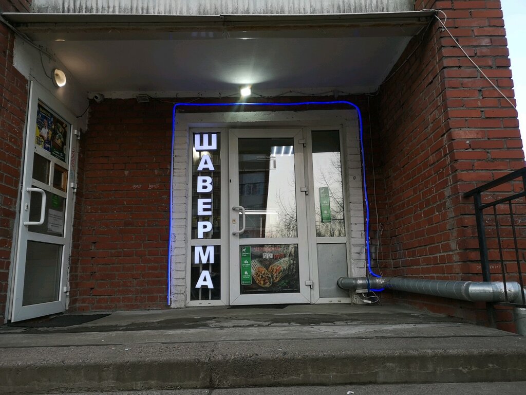 В принципе, если очень хочется есть, то можно зайти, не отравитесь. 1. Интерьер начала 2000-х годов, но при этом чисто, но подносы грязные! 2. Повар приятный в общении 3. Сама шаверма где-то на 3+ Мясо периодически попадалось переженное, очень много овощей, в том числе лука, не очень вкусный соус.