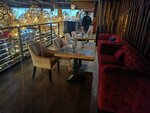 Ресторан очень красивый. К потолку подвешены огромные перфорированные золотые шары и они здорово украшают интерьер. Есть лифт, гардероб, детская комната, туалеты на каждом этаже, барная стойка, сцена. Столики так поставлены и отгорожены диванчиками, что всегда можно найти хорошее местечко для компании, чтобы и вам не мешали и вы никому. Кухня хорошая. Очень вкусные салаты и закуски, а вот треска просто отвратительная. Это какой-то суп с овощами в бумаге для выпечки. Категорически не рекомендую это блюдо. Официанты внимательные. Туалет чистый, дизайн интересный. Второй момент: в гардеробе у меня не взяли мешок с обувью. Пальто взяли, а вот обувь пришлось нести с собой на третий этаж и держать под столом. У меня впервые такое, вспоминая все рестораны, которые посетила и где переодевала обувь для мероприятия. Так что имейте в виду этот момент.
