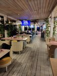Давно не попадались такие ужасные заведения. Начнем с самого ресторана: Ремонт потасканный, с потолка свисали 3 паука, пыльно. Открытая терраса только на 2-ом этаже, на первом за стеклом и в темное время суток ничего не видно. Единственный плюс - первая береговая линия. Пытались сделать заказ минут 15. Когда подошла официантка, выяснилось, что половины меню нет. Заказ ждали минут 40, точнее первое блюдо. Официанты знают о проблемах и помочь ничем не могут, мол какие вопросы к нам. По еде: был салат с креветками (первый раз вижу как креветки режут вдоль на 3-4 части) и дубовыми помидорами, паста сырная просто кошмар и хачапури с сырой свининой (ее из счета убрали и извинились молочным коктейлем, только за это добавила одну звезду). Wi-fi не работает вообще, в выходные очень громкая музыка и толпы неадекватных людей. Счёт 5к на двоих без алкоголя, ушли голодные. Была в других заведениях сети и там было сильно лучше. Еда: 3/10 Атмосфера: 4/10 Обслуживание: 3/10