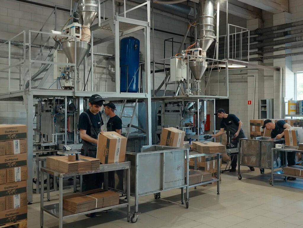 Компания DeMarco - это полный цикл производства кофе: обжарка, помол, фасовка в брендированный пакет из высокобарьерных материалов для защиты от окружающей среды и сохранения свойств продукта.
