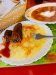 По пути в Краснодар остановились перекусить в этом кафе.Ребенку заказали пюре и куриную ножку, себе с мужем плов и харчо, также чай и компот.Это оказались ПОМОИ!Ребенок сразу отказался от еды, т.к. она воняла кислятиной.Плов видно отскребали от сковородки ,он был горелый и лип как пластилин.В итоге на наше возмущение, продавщица сразу поменяла тон и грубо ответила, что все претензии высказывать хозяйке..Ни хозяйки, ни жалобной книги мы не нашли..Жалею,что сразу не почитала отзывы, иначе бы сюда не сунулись..И ещё, когда я заглянула в окошко раздачи, то от туда был отвратительный запах тухлых тряпок, туалет и кухню скорее всего убирают одним инвентарем!