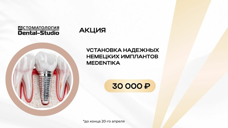 Выражаю огромную благодарность Арсентьеву Андрею Валерьевичу за быструю и качественную установку имплантов. Была удивлена, когда в течение 15 минут были установлены 2 импланта, и даже не почувствовала никакой боли. Андрей Валерьевич просто АС в своём деле, эрудированный, доброжелательный, обаятельный. Желаю Андрею Валерьевичу больших успехов в работе и семейного счастья. Так же благодарю Мамаева Максима Викторовича за отлично установленные коронки на импланты. Dental Studio прекрасная клиника с чутким и доброжелательным коллективом и разумными ценами. Вся аппаратура на самом современном уровне. Имея опыт хождения по другим клиникам, очень довольна тем, что в итоге обратилась к специалистам Dental Studio.