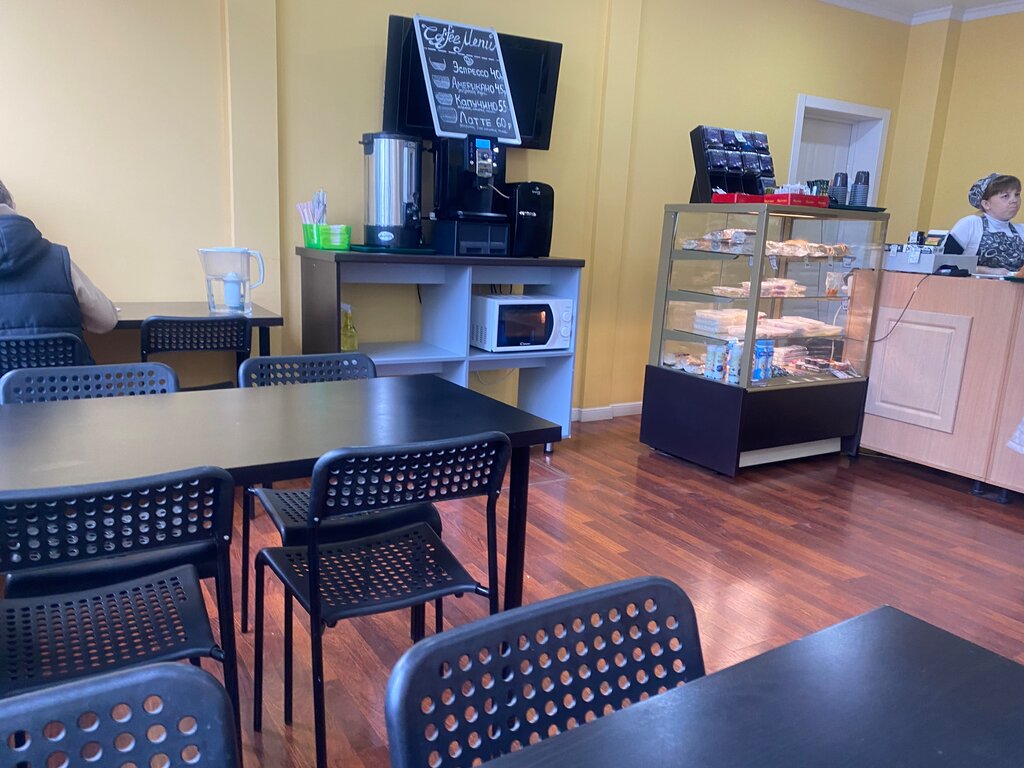 Внутри все чисто и аккуратно. Большой выбор продукции и цена очень приемлемая. Много места и все очень вкусно и свежее.