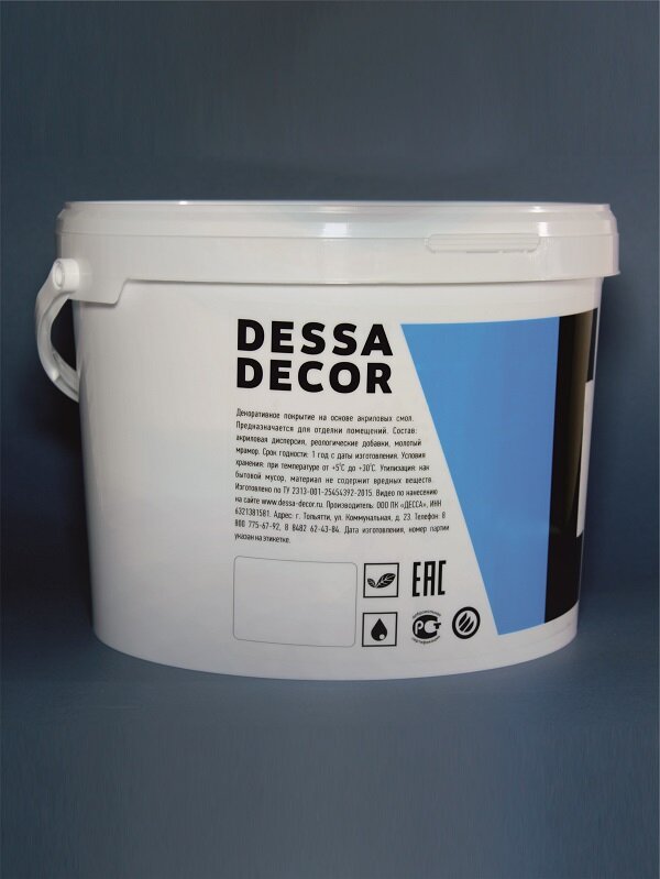 Расход ведра 2,5 кг на 16 кв.м. при нанесении в 1 слой. Специальная акриловая грунтовка для обоев, жидких обоев декоративных штукатурок и красок. Создает адгезионную поверхность и служит в качестве основания для всех декоративных штукатурок т.м. DESS