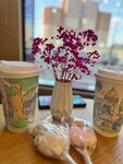 Интерьер классный, большой выбор, персонал хороший, но за два капучино отдать 780 руб-так себе. К сожалению капучино оказался горький, сироп не почувствовался. Стаканчики красивые и этого достаточно 😅