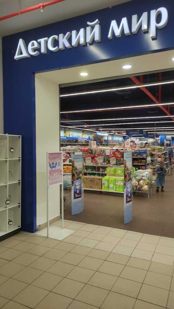 Очень удобное расположение. На первом этаже продуктовый супермаркет, на втором - детский мир. Подняться можно по лестнице или на лифте, куда легко заезжает большая детская коляска. Внутри просторно. Широкий ассортимент и размерный ряд. Мало очередей, при том, что мы были в субботу. Много сотрудников.