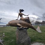 Красивая скульптура,дельфин и девушка ,так и хочется уплыть с ними в море