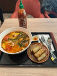 Очень вкусная еда, порции огромные. Попробовали почти все супы фо, все понравились. Можно пользоваться соусами острыми. Место уютное. Ходим сюда раз в неделю с коллегами.
