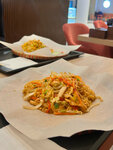 Прекрасная атмосфера, очень уютно и удобные диванчики. Еда очень понравилась, брали жаренный рис с креветками и спринг роллы с креветками. Хотя я не фанат креветок, всё равно очень понравилось ☺️ Так же очень вкусный зелёный чай 🍵 Большое спасибо ❤️