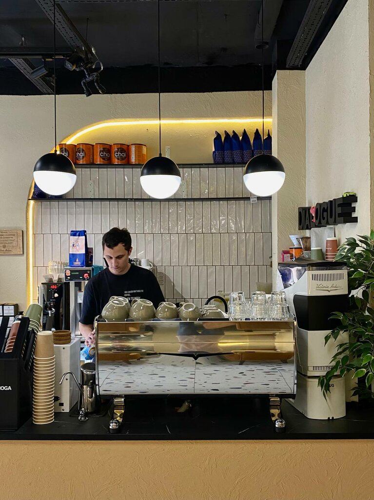 Изначально хотели позавтракать в соседнем кафе с турецким кофе, но в 8 утра ( а на картах заявлено, что работают с 8 утра) был открыт только «диалог». И мы в общем обрадовались. Прекрасно позавтракали в приятной атмосфере. Конечно, показалось не по краснодарски дороговато ( будто в Москве в кафе), но ооочень вкусно и свежо! Прекрасный раф, прекрасные салаты, прекрасные десерты и обслуживание!! Низкий поклон такому сервису! И.. да, увидели что люди спокойно заходят за кофе с собаками, что редкость для России. Браво, владельцы и персонал! Вдохновения и процветания!