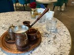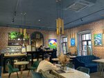 Очень атмосферное кафе, выполненное в дизайнерском стиле, приветливый персонал, красивая подача, лично я, брал кофе по-турецки с перцем и медом, все очень вкусно и красиво. Расположено кафе рядом с набережной, и, если кому-то интересно, недалеко от кафе, находится одна из 15 фигурок барсиков, это символы города, расставленные по всему Пскову. Советую данное заведение)