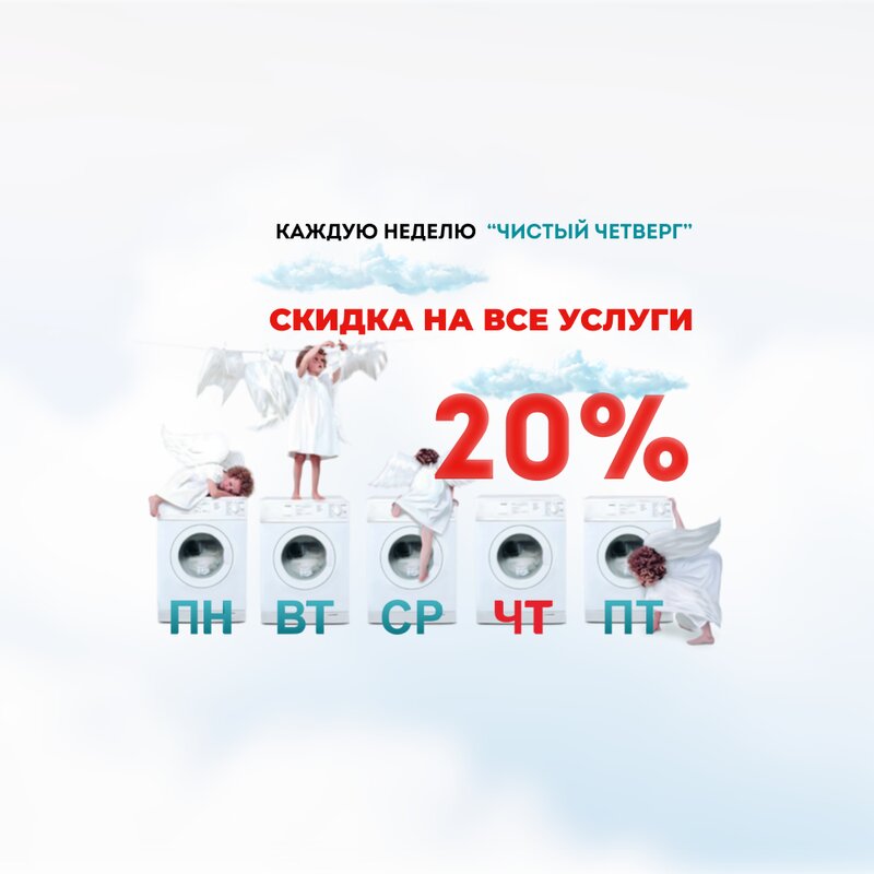 Dry-cleaners:textile, soft toys, quilts and coverlets, curtains, pillows and featherbeds, furs, leather and suede, carpets, down jackets, wedding dresses, shoes, baby carriage, furnitures