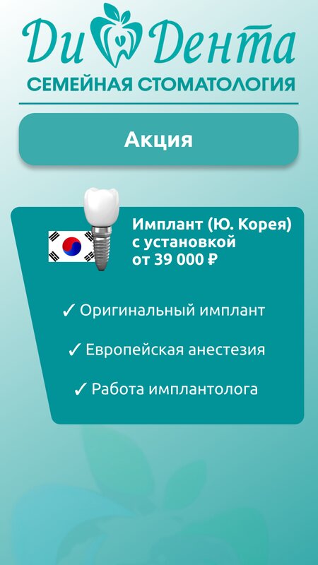 Обратился в стоматологию Дидента сначала на консультацию по имплантации. С самого начала понравилось отношение, администратор сразу записал и приняли вовремя На консультации врач все подробно объяснил, какие этапы лечения и сколько времени это займет, а также сориентировали по стоимости До этого был в нескольких клиниках, поэтому есть с чем сравнить! В итоге решил делать имплантацию здесь, процесс сам прошел гораздо легче, чем ожидал - все аккуратно, с нормальной анестезией без боли. После установки дали подробные рекомендации, что можно и нельзя, как ухаживать, плюс было приятно, что можно было позвонить, если появятся вопросы - не бросают после оплаты! Сейчас уже прошло время и импланты прижились отлично, ничего не беспокоит, выглядит как свои. ОЧЕНЬ ДОВОЛЕН РЕЗУЛЬТАТОМ!!! В целом могу сказать, что клиника оставила хорошее впечатление: сервис, адекватные цены и действительно внимательное отношение к пациенту Рекомендую!!!