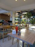 Cozy and crowded place (during lunch or dinner). Good place for eating and talk with friends in one table. Have home flowers and it makes atmosphere more pleasant