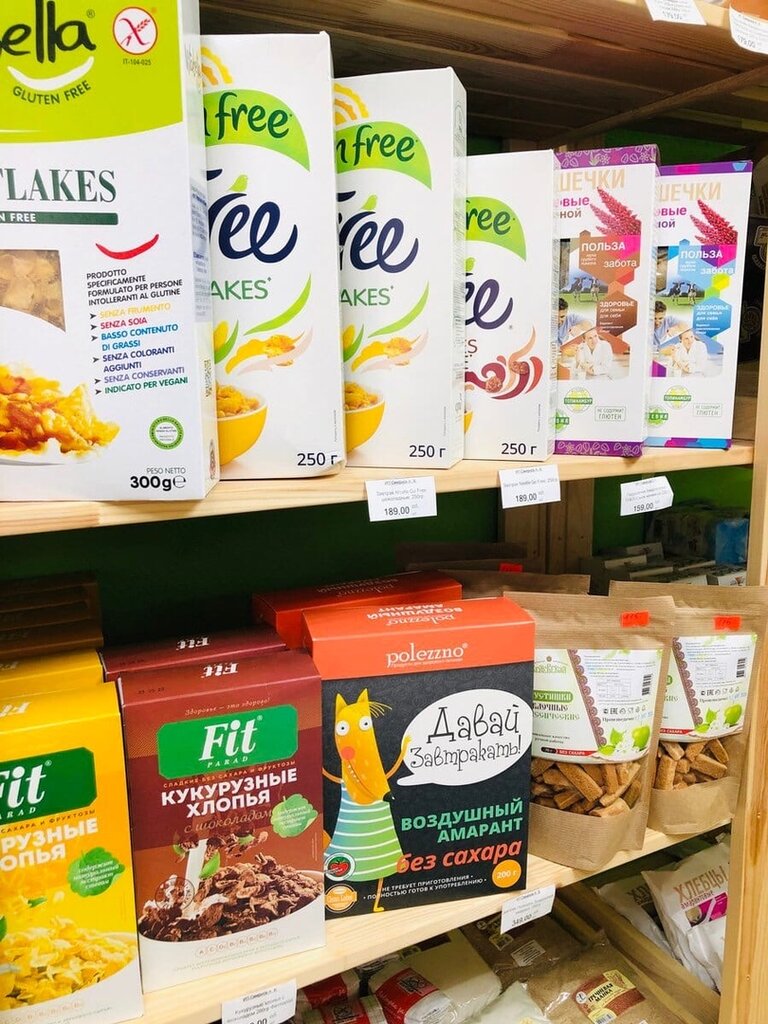 Отличный магазин для тех у кого непереносимость глютена и лактозы, а также для тех кто следит за своей фигурой. В продаже есть безгютеновая выпечка, также сыроетческие тортики. Цены не совсем дешевые