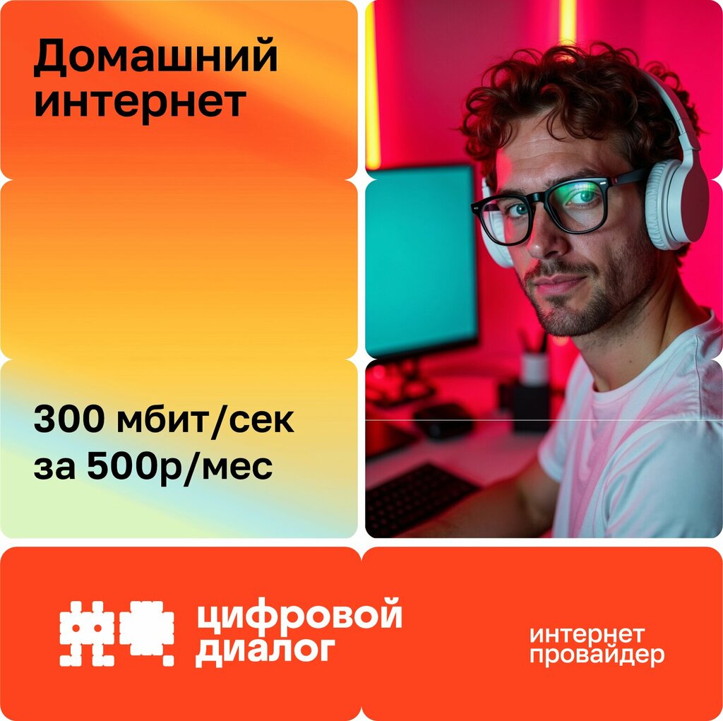 Подключение бесплатно! До 300 мбит/сек за 500 руб/мес