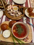 Хорошо создана аутентичная атмосфера в зале, под сельскую старину. Официанты также, в соответствующем одеянии, поддерживают общий стиль. Меню приличного размера, выбор блюд достойный. Размер порций и качество приготовления - очень неплохо, даже очень. Подача быстрая, заскучать не получится. На первом этаже при входе есть гардеробная и гардеробщик, всё продумано и предусмотрено. Зал среднего размера, столов много, есть даже столы на 8 человек, на компанию. В целом - отличное место для отдыха. Один минус - парковка для автомобилей отсутствует в непосредственной близости, нужно искать где припарковаться.