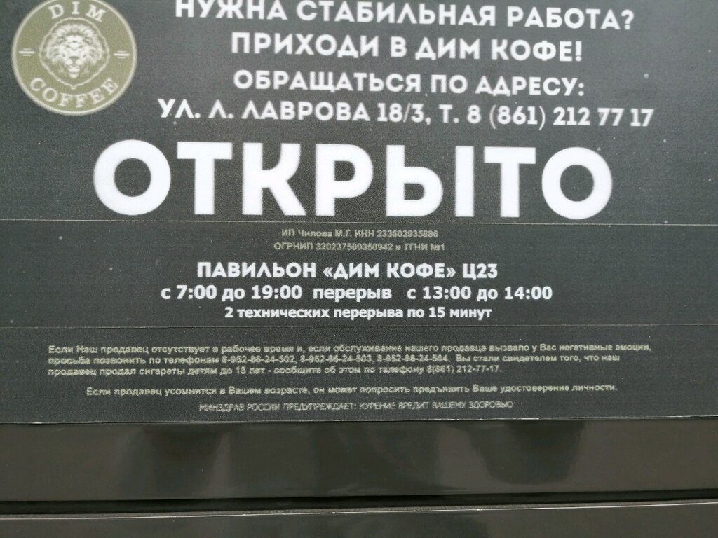 Отличная кофейня!!! Отличное обслуживание!!! Продавцы отзывчивые и доброжелательные. Продукция Dim всегда свежая и вкусная. Кофе классный, холодные напитки на любителя.