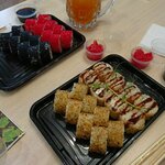 Сегодня 22.09 вечером, с дочерью зашли сделать заказ на ужин) Заказ приняла молодая девушка, вежливая, приятная, улыбчивая, даже помогла с выбором роллов для дочери и оказалась права, дочери действительно очень понравились. Подождали заказ прям в заведении. Порадовала подача🔥 всё аккуратно, украшения на роллах🔥 прозрачный пакетик, в котором всё это красиво лежит, удобно нести и когда дома открыли пакетик, как же приятно было увидеть открыточку, это мелочь, но очень приятная. Вывод, роллы вкуснейшие, выход и подача просто 🔥 Желаю вам много клиентов и процветания.