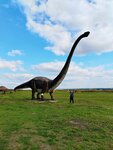 Динозавры впечатляют! Особенно детей, кто их любит. Но! Сама территория оставляет желать лучшего. Динозавры просто стоят в поле. Без растительности, без антуража. Огромный сквозняк, ветрено, не все динозавры уже работают. Зачем-то на каждом приклеен лист А4- не трогать… штраф… И так далее. Оч это портит картину. Посмотреть можно, если проезжаете мимо, целенаправленно ехать из далека, не советую(