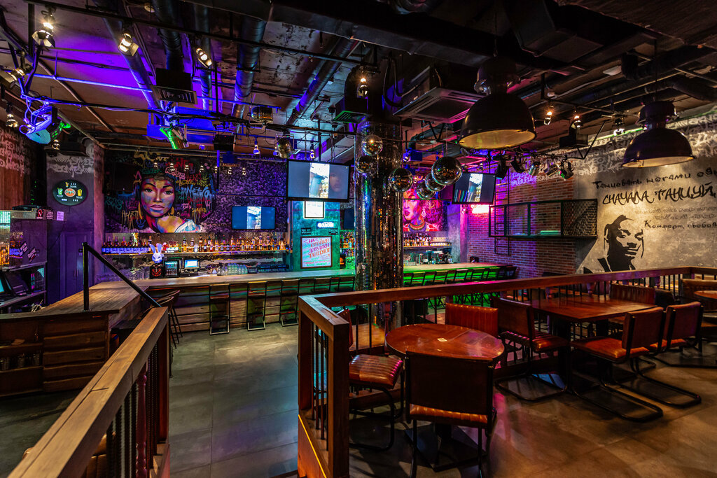 Классный клуб! Была и на тематических ночах типо хелоуин , так и в обычные вечера. Музыка хорошая, не один тунц тунц, а со словами и современные, танцевать в одно удовольствие. Фишка заведения - девушки официантки несколько раз за вечер танцуют на барной стойке. И к слову на барной стойке можно в течении вечера танцевать всем девушкам, там это приветствуют. Клуб в подвале , но помещение очень комфортное , два уровня. На верху только столики на компанию, внизу танцпол и ещё несколько столиков, бар. Ходим сюда в удовольствием! Зал украшен рисунками и графити. Всем советую ! Не пожалеете !