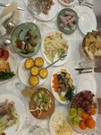 Отмечали мой юбилей 31 января 2025 года Начну сначала В ноябре забронировали сделали меню И хочу сказать не ошиблись Все было супер на высшем уровне На фото на столе еще не все блюда в течении вечера подносили так как были закуски которые шли горячими в общем вышло 3000 с чем то за человека ! Но у нас было 16 закусок + 2 горячих + 3 салата , скажу так заказывайте меньше !!!!! Все вкусное но было такое разнообразие что домой увезли полные пакеты !!!!обслуживание супер ! Официантке Светлане респект ! Обслуживала замечательно , вежливая , все приносила во время , все было чисто ! В общем спасибо вам всем