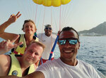 We took parasailing and snorkeling. Parasailing is very cool and safe. You take off from a sitting position directly from the boat, you also get on the boat. Everything is simple, convenient and comfortable. I can dip it into the water at will: if you want only with your feet, they will do it, if you want more, they will do more. All the guys are polite, helpful, help with everything. Snorkeling was taken to 2 islands (they are 2 hours) - also good. The second, farthest, reef is more interesting, more fish, more turtles. The only thing was that there was no soap solution on the boat so that the masks would not fog up. Prices can be negotiated. In general, the impressions are positive, I can safely recommend.