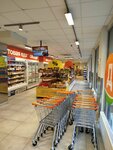 Я обычно не пишу отзывы, но тут накипело, поэтому распишу о том насколько это отвратительный магазин - я его лично посещаю только потому что он самый близкий к моему дому, но с сегодняшнего дня лучше буду ходить куда угодно не сюда: 1. Продукты есть, но организация расположения у них честно говоря странная, но это мелочь 2. Примерно год назад там был ремонт и магазин выглядит прилично до тех пор пока вы не заметите что работники постоянно разбирают поставки только на протяжении ВСЕГО рабочего дня, а то и нескольких, из-за этого поддоны с коробками постоянно занимают пространство в магазине. Часть потолка в холле уже отсутствует. 3. Работники хамы, работают оооочень медленно, грубят, на просьбы отвечают так будто они здесь тоже покупатели, а не рабочие. Всегда когда прихожу половина терминалов самообслуживания не работает потому что "Подождите пока подойдёт помощник", а касса работает только одна и то там очень долгая очередь даже если покупателей всего два, из-за чего я кассу избегаю. Честное слово, словно не работать пришли, а отсиживать смену. Также работники постоянно начинают считать кассу и отключаьтещё ДО конца рабочих часов