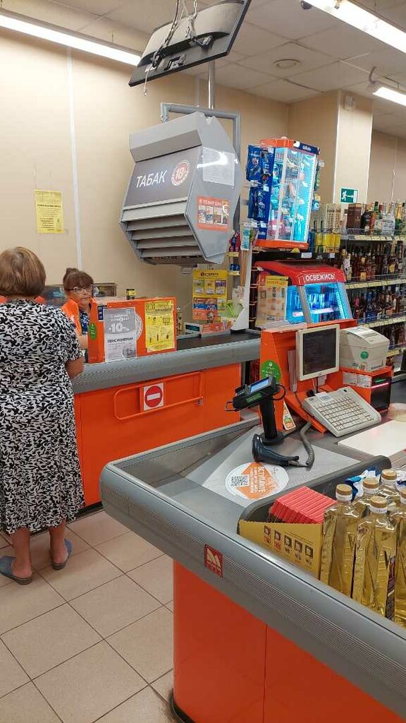 Магазин обновили новые витрины, товар разложен более-менее нормально стал никак раньше, все вперемешку и не найдёшь ни ценников ничего, но кассы самообслуживания у них какие-то дебильные. Даже вот товар не успеваешь тот который взяла ты , он уже тебе лишнего там чего-то навыбивал и постоянно нужно требовать продавца на исправление, а они и не торопятся подойти И все время на кассе одна женщина работает, как белка в колесе другие ерундой занимаются.