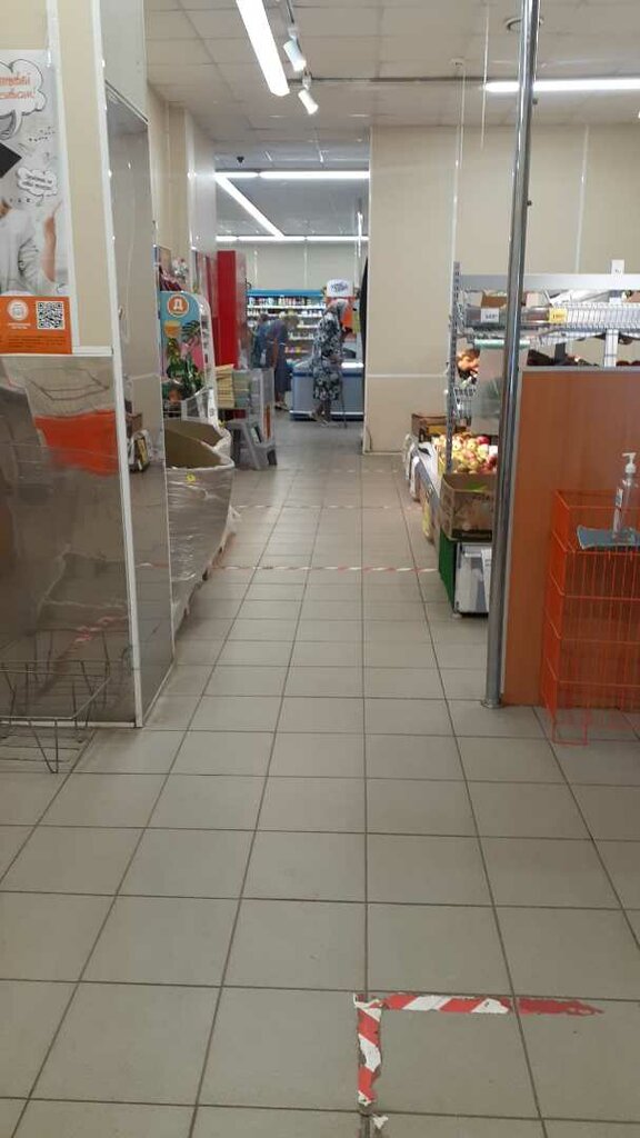 Очень тесно. Тележки поломаны. Вход через кассы. Находили много просрочки. Часто нет нужного товара или в малом количестве. ( Детский кефир агуша, куриные тушки, творожки детские агуша, ......) Овощи и фрукты частенько в плачевном состоянии. Кассиры вечно неопытные ( Галя отмена!) , вечно один кассир и очереди вообще по 10 минут стоя с ребёнком.