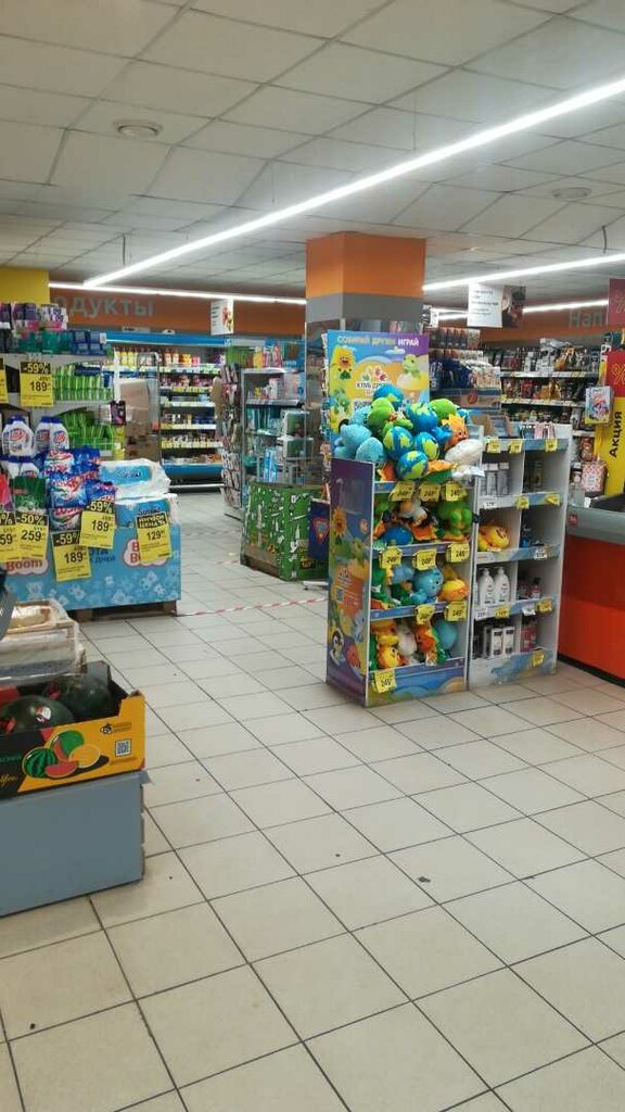 Сам магазин не плохой чисты товары как в обычном сетевом магазине, но есть один кассир к сожалению не знаю как его зовут бейджика не было, она мало того что медленно работает но это не критично , но за чем еще сидеть и разговаривать по телефону или просто что то там читать . Уважайте людей в очереди нам тоже хочется поскорее купить и уйти а не стоять а очереди пока вы на играетесь в телефоне