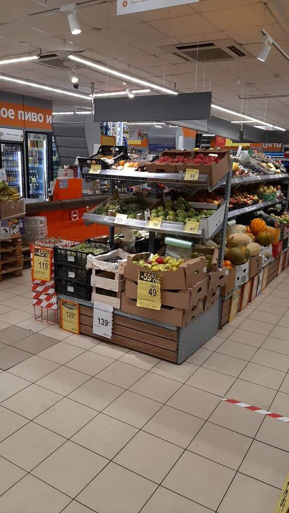 Отличный магазин, хороший персонал, уже столько лет одни и те же сотрудники спасибо управляющей , вопросы решаются все четко с выбором и ассортиментом товара, широкий выбор овощей и фруктов, всегда все свежее , чисто. Светло сотрудники молодцы , смотрят за залом ловят воров