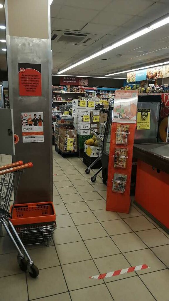 Замечательный магазин. Хочется отметить чистоту в зале, отсутствие нагруженных паллетов с товаром, в отличии от других магазинов. Магазин чистый и свободный, есть место,чтобы разъехаться двум тележкам. Хороший и приветливый персонал. Всегда поможет и подскажет - что ,где и как. Появилась новинка- слип-чек. На кассе всегда предложат товар по этому слипу, вне зависимости от размера покупки) Так же никогда не могу уйти оттуда без Товара У Кассира. На самих полках всегда есть товар,отсутствуют пустоты в зале. Опрятный и "вкусный" отдел с овощами. Видно,что за этим отделом следят. Овощи и фрукты всегда привлекательны, нет порченного товара. В магазине полно акций и скидок, ценники соответствуют пробиваемой цене на кассе. Всем советую этот магазин.