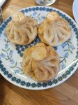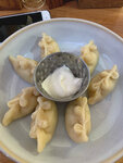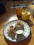 Были сегодня в "Макси" и зашли поужинать в "Джари". Здесь всегда вежливые официанты, помогут определиться с выбором, если не знаешь, чего хочется. Мы взяли хинкали и говяжьи щечки. Хинкали том ям - необычное сочетание креветок, имбиря, грибов и меда, но вкусно.