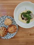 Хинкали вкусные, хороший баланс мяса и специй, единственное смутила цена хинкали 130 рублей за штуку🤨, причем сами хинкали не огромные - они обычные, даже в Москве стандартная цена 90 рублей за штуку; хачапури с песто тоже достаточно вкусное😋. Официанты вежливые👍.