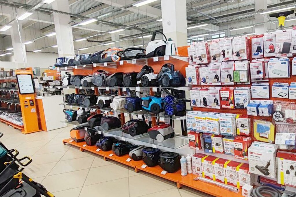 Отличный магазин, где есть много всякой бытовой техники, цены разные. Сотрудники вежливые, места много, чисто и уютно. Нет больших очередей. Вроде даже единственный такой магазин в городе