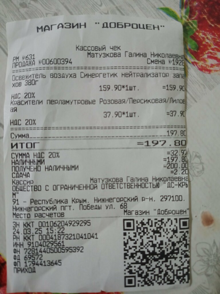 Сейчас была в Доброцене на ул. Победы, 70.Магазин неплохой, большой ассортимент товара, чисто, кассиры доброжелательные. Но возник вопрос :от директора магазина услышала не желание решить вопрос, а желание отфутболить покупателя-быстро и надёжно, и желательно навсегда, а от женщины, которая была на кассе, вообще промелькнуло, что вы сюда больше не придете!А вопрос был о наличии 5℅скидки пенсионерам, которую мне не предоставили и о которой в магазине нет нигде информации, а кассир на кассе даже это не озвучила. В результате выяснения скидку мне все-таки отдала молодая женщина, не кассир, в бушлате Доброцена, хоть директор и был против. Так как директор на мое предложение отреагировал негативно, предлагаю разместить информацию о скидке в зоне видимости. Пользуюсь услугами магазина с момента открытия и скидка оказывается действует с 11ноября 2024 г, я услышала о ней случайно и вопрос привёл к разговору на повышенных тонах.
