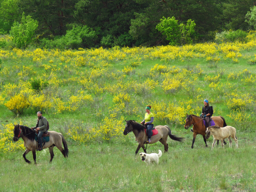 Прекрасное место окружённое божественной природой!!!Нас радушно встретили хозяева во главе с гусем,который ходил по территории вместе с нами😆 Верблюд, голуби разных пород,павлины,и конечно же лошади-вот кого мы повстречали в этом чудесном месте.Нам провели инструктаж,подобрали каждому лошадь подходящую по темпераменту и мы отправились в поход.Если слушать внимательно и затем применить на практике все советы,то быстро расслабляешься и начинаешь наслаждаться ездой!Обязательно стоит пробовать!Забываешь обо всём в окружении таких красивых животных❤️❤️❤️