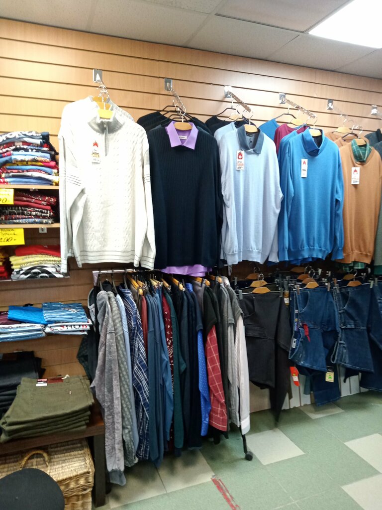 Магазин вполне неплохой. Большой выбор больших размеров. Много разных видов одежды. Качество одежды отличное. Очень приветливые продавцы. Однако цены очень кусачие.