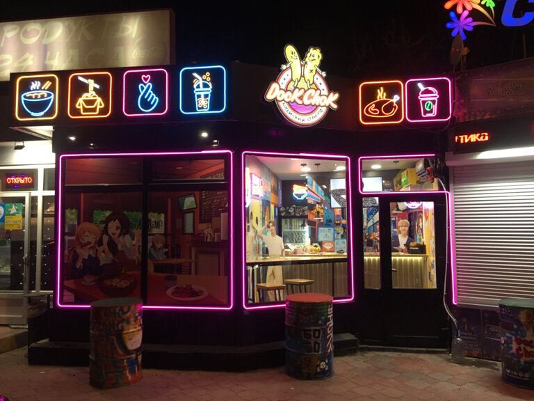 Не пишите на эту точку об обслуживании другого персонала иной точки данного заведения, так как это портит репутацию лишь точки и бедного персонала, а не самого рестика. Могу смело объявить, что данная точка, именно тут всё отлично. Помещение малое, как никак это не столь востребованная кухня, поэтому подходит для обслуживания. Играет и показано на телеке к-поп, атмосфера ощущается миленько. Обслуживала нас очень милая женщина, всё есть в меню, никто не траванулся, всё вкусно и сочно, за достойную цену (те же корн доги очень сытные). Приготовлено в целом быстро, долго не ждали, подали горячим, насладились вдоволь. Так что, советуем.