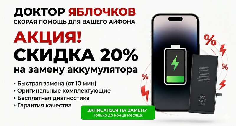 🔋 Замена аккумулятора iPhone 16 Pro — резко падает заряд в Перми Если iPhone 16 Pro быстро теряет заряд, проценты «прыгают», смартфон выкл...