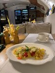 В ресторане были компанией, заказывали разное и много, что хочется отметить особенно: подали пасту с креветками, стоимость блюда за 900₽, на выходе: макарошки и 3!!!Карл! 3 креветки (фото прикладываю)! Что это за расчет такой? Паста невкусная, соус кислый. Салаты самые обычные, тари-тар из говядины неплох, пицца - ее особо не испортишь, но тесто толстое, особенно борт. Фирменный десерт - совсем не впечатлил, невкусно. Чай (любой) заказывали 3 чайника разных - весь вкус испортила вода, сразу бьет в нос и саднит горло плохо фильтрованная, возможно, что даже водопроводная вода. Обслуживание долгое, но нас предупредили об этом, все блюда выносились как попало,однако сразу заметно, что молодые девушки официанты старались, за это благодарность. Сидели мы на летней веранде, внутри бы было неприятно, затхлый запах полуподвала, полутьма. Неприятно, что в заведении 1 туалет на весь ресторан, убирается он не тщательно, к большому сожалению, а очередь приходится ждать у столиков с посетителями вплотную, ни им, ни нам было крайне некомфортно! Место не рекомендуем