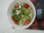 Хрустящий салат айсберг, сочные томаты черри, перец, кубики брынзы, соус бальзамик и итальянские травы